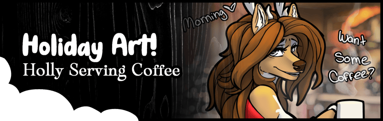 Around Christmas time I draw Holly my sweet reindeer character it looks like you woke up after her. she's just offering you coffee. ♥